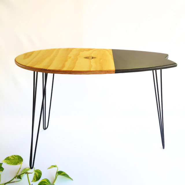 A Mesa Lateral surpreende pela leveza e personalidade. Feito artesanalmente no Brasil, utilizamos o multilaminado naval premium de pinus em seu projeto, proporcionando durabilidade e expressão com a mescla de cores e veios da madeira.